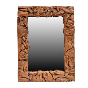 Crafted from naturally weathered driftwood, this mirror frame celebrates organic textures and earthy tones shaped by time and tide. Each piece carries unique grains, curves, and markings, making no two frames alike. Raw yet refined, it brings coastal charm and effortless warmth to living spaces, entryways, or bedrooms.