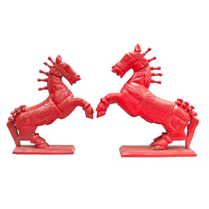 A bold wooden horse sculpture finished in a striking red polish, symbolising power, passion, and forward momentum. The vibrant tone enhances its sculpted form, making it a standout accent piece. Perfect for coffee tables, consoles, or office desks, it adds energy, character, and artistic presence to your space — a statement of strength with a contemporary edge.