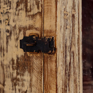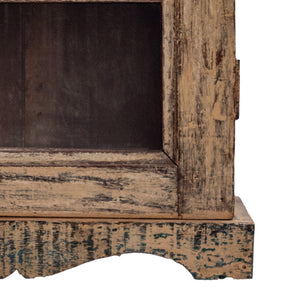 A charming vintage wall-mounted cabinet crafted in solid wood, designed to store treasured knick-knacks and everyday keepsakes. Its compact form and warm, aged finish highlight the rich grain and timeless durability of wood.