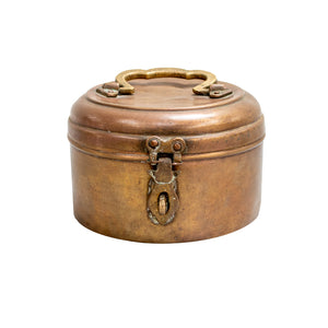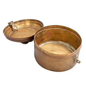 Authentic vintage brass storage boxes traditionally used to store ladoos and festive sweets. Rich in character with a naturally aged patina, each piece reflects old-world craftsmanship and heritage charm.Once part of celebratory kitchens and rituals, these boxes now make elegant décor accents or unique storage pieces — adding warmth, nostalgia, and timeless Indian tradition to your space.